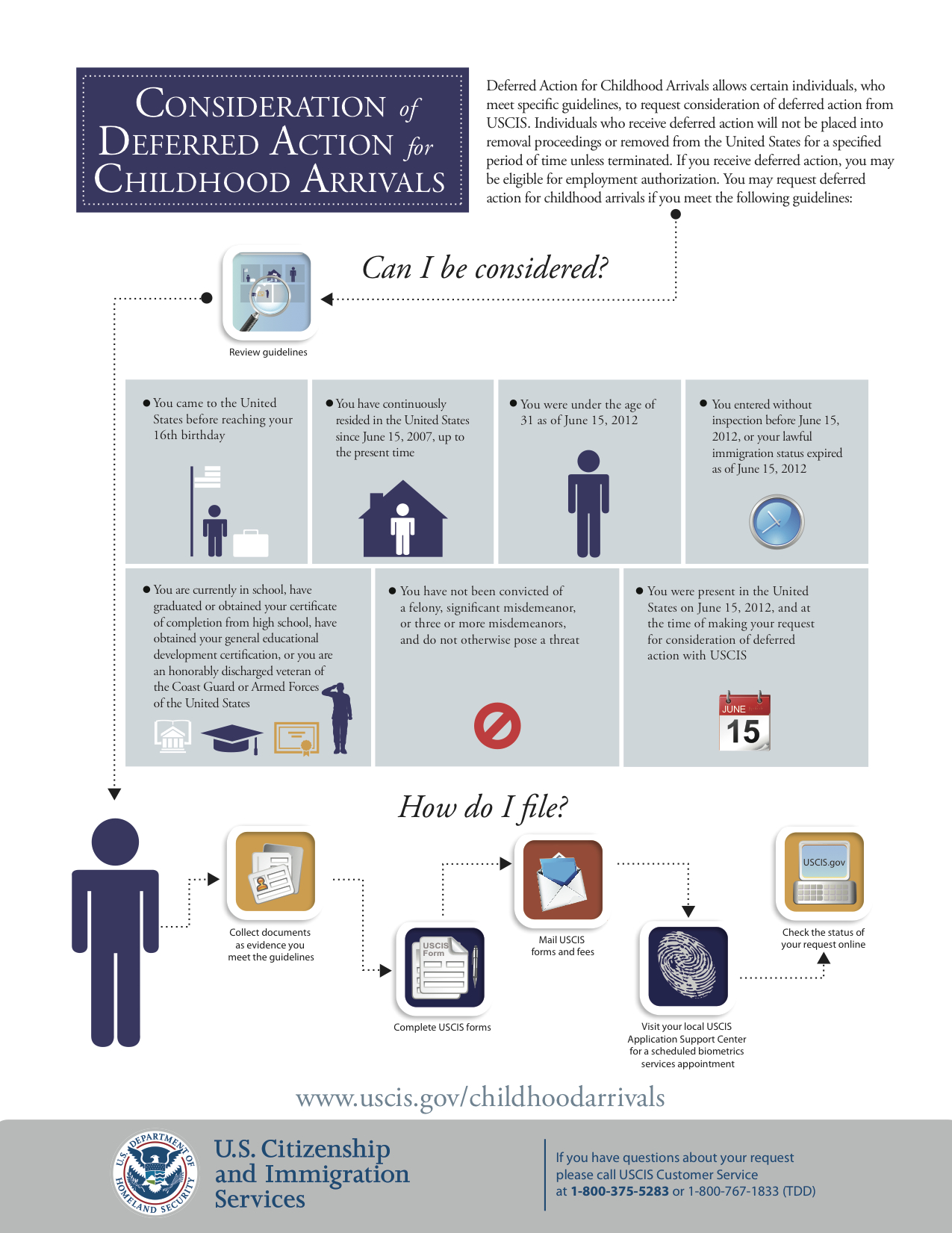 Today the U.S. Citizenship and Immigration Services, the branch of the Department of Homeland Security that will handle the defered action...